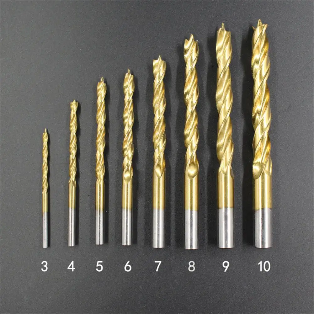 Kopen Goedkoop 3 10mm 8 stks Titanium Plated Houtbewerking Drie Punt Boor Set Hout Hout Boren Tool Clearing houtbewerking Boor Online.
