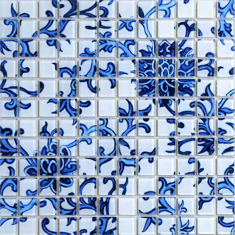 . Kopen Goedkoop 11 STKS Blauw en wit puzzel parket moza iuml;ek balkon badkamer kristal glasmoza iuml;ek pijler behang keuken backsplash tegels Online.