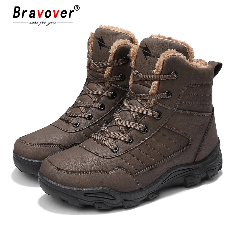 Goede Koop Bravover Nieuwe Winter Warm Houden Lederen Martin Laarzen Timber Land Schoenen Tooling Snowboots Veiligheid Werkschoenen Antislip enkellaarsjes Goedkoop.